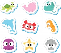 Uživajte v kopanju še bolj z barvitimi igračami za v kad iz penastega materiala v obliki morskih živali. Paket vsebuje 9 lepo oblikovanih kosov, ki bodo vašim otrokom popestrili čas v vodi.