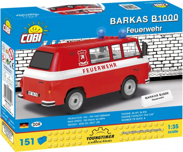 Barkas B1000 je bil ikonično dostavno vozilo in minibusek, proizveden v letih 1961–1991 v nekdanji NDR. Različica Feuerwehr je bila prilagojena potrebam gasilskih enot. Ta komplet COBI zvesto ujame značaj zgodovinskega vozila v merilu 1:35, visokokakovostni potiski pa poskrbijo za odličen videz brez nalepk.