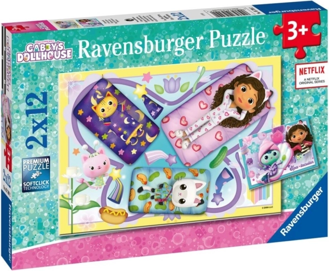 Sestavljanka 2x12 Gabi in Mačkin dom znamke Ravensburger ponuja dva kompleta, vsak po 12 kosov, idealna za najmlajše ljubitelje pravljic. Dimenzije vsake slike so 26 x 18 cm.