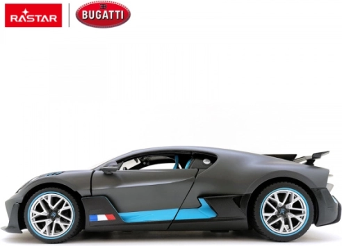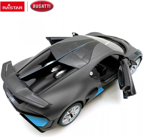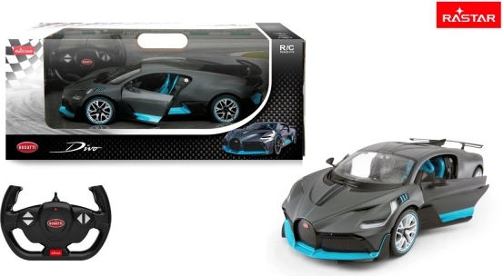 Ta uradno licenciran model Bugatti Divo podjetja RASTAR je izdelan iz visokokakovostne plastike ABS in opremljen z vrhunskimi mehanskimi ter elektronskimi komponentami. Zvesto reproducira proporce in detajle pravega supersporta ter zagotavlja hitro in natančno vožnjo z odlično vodljivostjo.