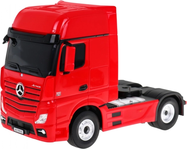 Tovornjak Mercedes‑Benz Actros 1:26 s polpriklopnikom zlahka prepelje priloženi Mercedes‑AMG GT 1:24. Oba modela obvladata vožnjo naprej/nazaj/levo/desno in se zahvaljujoč gumijastim pnevmatikam ter neodvisnemu vzmetenju dobro znajdeta tudi na neravni podlagi. Actros je opremljen s žarometi in zadnjimi lučmi, ki zasvetijo med vožnjo.