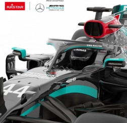 Ta licencirani RC model Mercedes-AMG F1 W11 EQ Performance zvesto posnema podrobnosti slavnega enoslednika Formule 1. Na karoseriji najdete ekipne logotipe, sponzorske nalepke in aerodinamične elemente, ki mu dajejo avtentičen videz. Merilo 1:12 poudari impresivne proporce in razstavljeni model odlično izgleda tudi na polici.