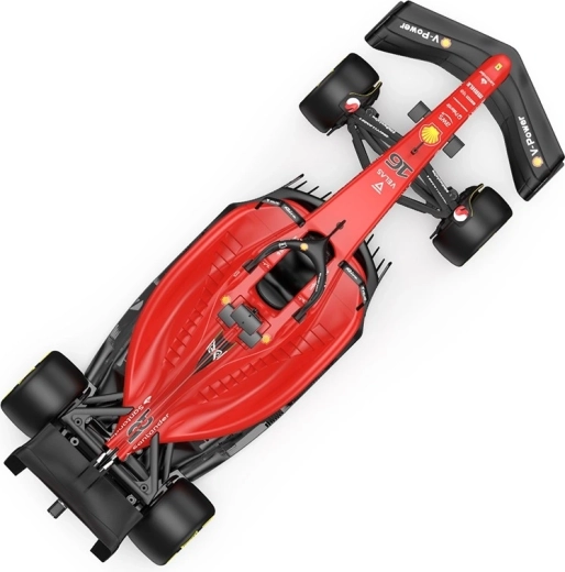 Doživite vznemirjenje dirkalne steze z ikoničnim rdečim enosedežnikom FERRARI F1. Model navduši zvesto izdelano karoserijo, licenčnim videzom z nalepkami sponzorjev in kakovostno izdelavo za dolgo življenjsko dobo. Zahvaljujoč gumijastim kolesom ima odličen oprijem in stabilnost, medtem ko mehka sprednja in zadnja usmerjevalnika (spoilerja) bolje prenašata udarce.