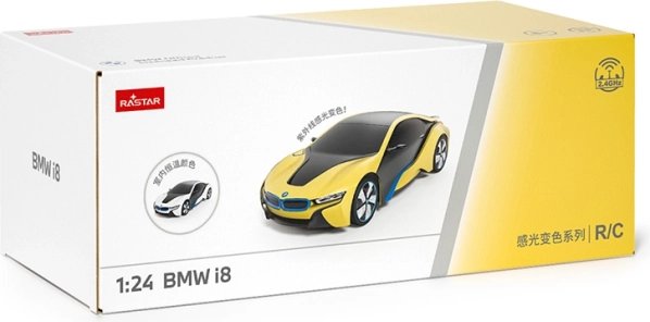 Daljinsko upravljani model BMW i8 RASTAR je futurističen avto z edinstvenim lakiranjem, ki spremeni barvo iz bele v rumeno ob uporabi sončne ali LED svetlobe. Ta licencirani BMW združuje najnovejšo tehnologijo z zvesto reproduciranimi podrobnostmi pravega vozila.