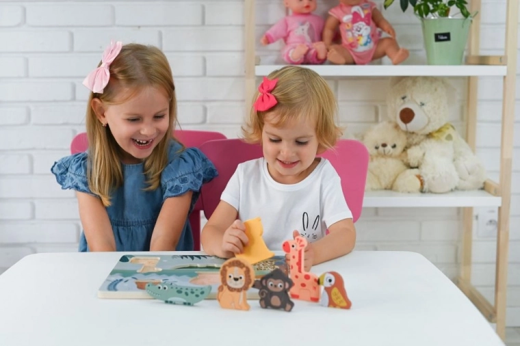 Igrača razvija koordinacijo roka-oko in prostorsko zavedanje, saj otroci vstavljajo živalske koščke v ustrezne odprtine.