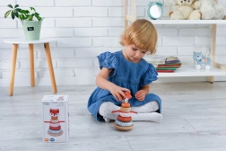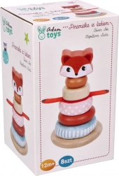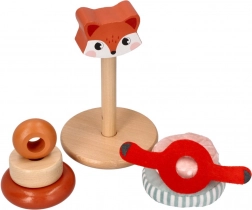 Stolp za zlaganje z motivom lisice je zasnovan za razvoj motoričnih in senzoričnih spretnosti otrok od 12 mesecev. Ta prisrčna lisica spodbuja otroke k zaznavanju tekstur, barv in zvokov.