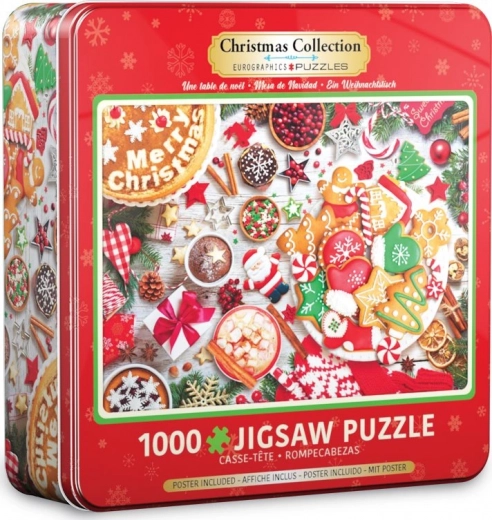 Eurographics sestavljanka Božična miza 1000 koščkov v pločevinasti škatlici