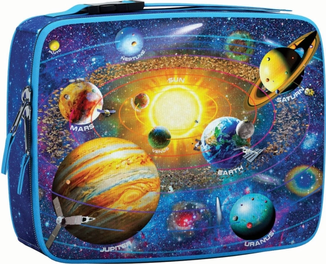 Sestavljanka v darilni embalaži je odlična izbira za vse ljubitelje vesolja. Zaradi privlačnega motiva Osončja otroci razvijajo logično razmišljanje, potrpežljivost in fino motoriko. Praktični termo ovitek služi kot izotermična škatla za malico z zadrgo, zato embalaža odlično koristi tudi po končanem sestavljanju.