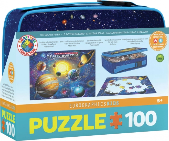 Odkrijte zabavno učenje s sestavljanko v praktičnem termo ovitku za malico. To darilno pakiranje ponuja 100 koščkov z motivom raziskovanja Osončja, idealno za otroke in odrasle. Priložena je samostojna predloga, sestavljena sestavljanka pa meri približno 48 × 33 cm.