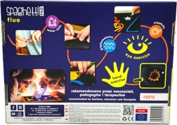 Odkrijte Spaghetti Fluo – pameten ustvarjalni set, ki združuje fluorescenčne učinke, barvne ježke/velcro vrvice in LED svetilko s fluorescenčnim flomastrom. Otroci vadijo fino motoriko, koordinacijo oko–roka ter pravilen prijem pisala, medtem ko ustvarjajo domiselne slike na priloženih šablonah.