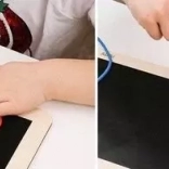 Barvne vrvice se na tablo pritrdijo v hipu – otroci lahko prosto eksperimentirajo, prekrivajo linije in sestavljajo nove vzorce brez lepila.