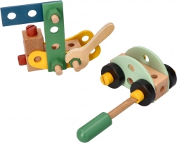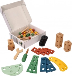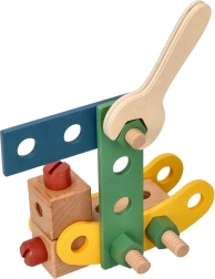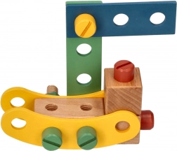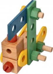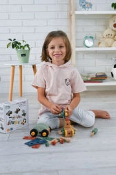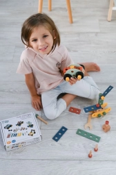 Predstavljamo edinstven leseni konstrukcijski set za otroke, ki spodbuja razvoj koordinacije roka-oko, logičnega razmišljanja in ustvarjalnosti. Komplet vsebuje vijake, letvice, matice, kolesa ter tudi izvijač in ključ – vse potrebno za sestavljanje vozil.