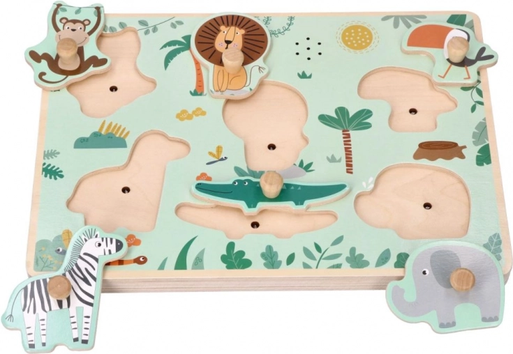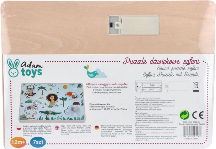 Z zahvaljujoč tej zvočni predstavitvi sestavljanke se otroci naučijo ne le oblik, temveč tudi zvokov živali s safarija. Podpira razvoj fine motorike in slušnega zaznavanja.