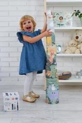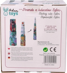 Piramida iz lončkov Safari otrokom ponuja zabavo in hkrati razvija njihove sposobnosti. Komplet vsebuje lončke različnih velikosti, ki jih je mogoče zložiti v višino do 96 cm. Vsak lonček je okrašen z živahnimi živalskimi ilustracijami, ki spodbujajo otrokovo domišljijo.