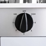 Vrtljivi gumbi kuhalnih plošč s karakterističnim klikanjem, odpirajoča se vratca in interaktivne podrobnosti posnemajo pravo kuhinjo.