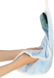 Mešanica poliestra in najlona je prijetno mehka na otip, dobro vpija in se hitro suši, zato je brisačka kmalu ponovno pripravljena za uporabo. Praktična zanka omogoča obešanje na kavelj točno v otroški višini. Vzdrževanje je preprosto – pranje v pralnem stroju na 30 °C s podobnimi barvami.