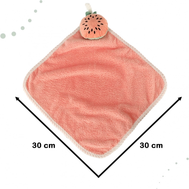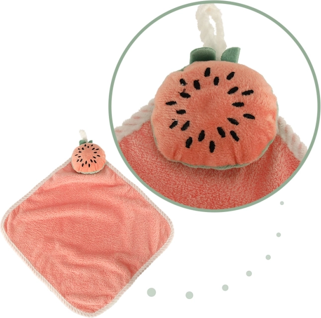 Ta otroška brisačka je kot ustvarjena za majhne ročice. Kompaktna velikost 30 × 30 cm, mehak material in igriv motiv lubenice spodbujajo pravilne higienske navade brez pregovarjanja. Zahvaljujoč praktični zanki jo zlahka obesite na kavelj v kopalnici ali v garderobi v vrtcu.