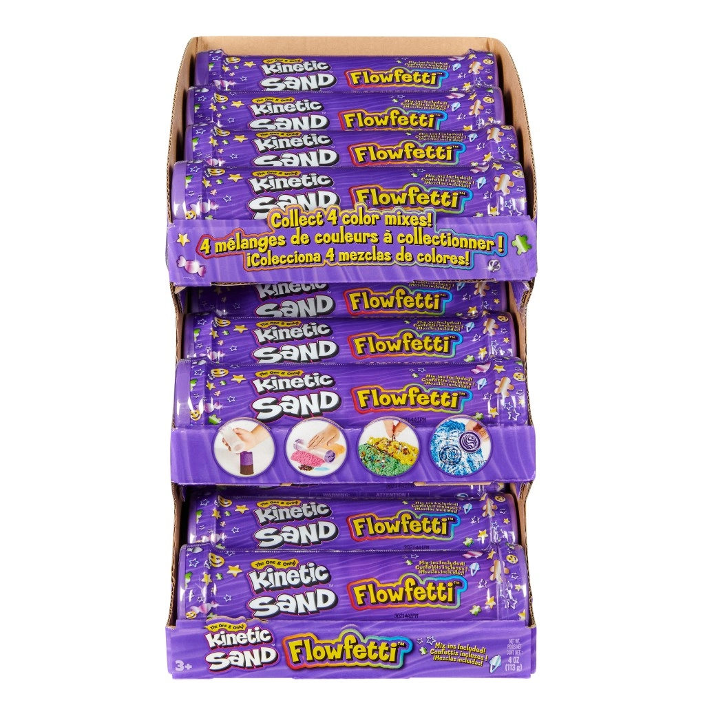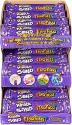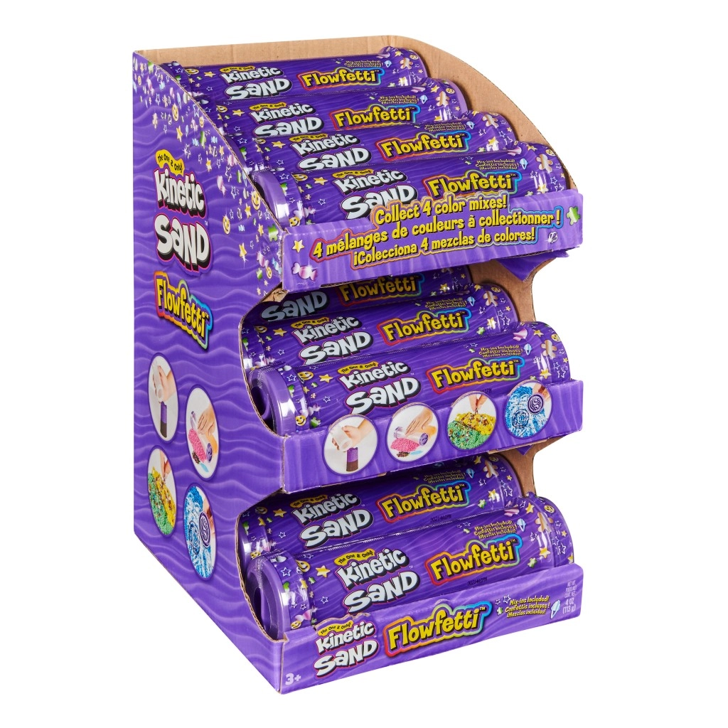 Potopite se v svet ustvarjanja s KINETIC SAND Flowfetti – kombinacijo mehkega kinetičnega peska in bleščečih konfeti za popolno senzorično doživetje. Vsak tulček skriva 2 barvi peska, zabavne bleščice in pripomočke, navdihnjene s temami sladkarije, plaža ali galaksija. Zahvaljujoč kompaktni embalaži igro zlahka vzamete s seboj.