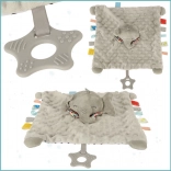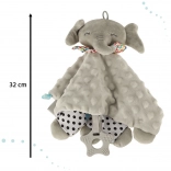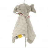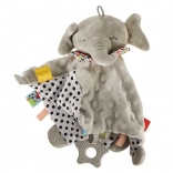 Šelesteči slonček je večfunkcijska senzorična igrača, ki izpolnjuje vse potrebe vašega otroka. Nudi prijetno udobje, medtem ko grizalo pomaga pri blaženju bolečin ob izraščanju zobkov. Slonček je izdelan iz mehkega materiala z zanimivo teksturo, ki razvija dotik otroka.