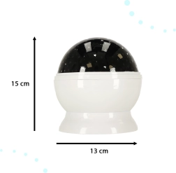 Nočni projektor zvezd spremeni sobo v prijetni planetarij. Barvna projekcija zvezd in lune ustvari občutek varnosti, pomaga otrokom lažje zaspati in hkrati predstavlja čudovito dekoracijo doma. Zahvaljujoč preprostemu upravljanju s tremi tipkami hitro izberete najljubši način in vrtenje kupole.