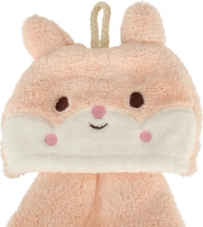 Spodbujajte pravilne navade umivanja rok na igriv način. Otroška brisačka z zajčkom v rožnati barvi motivira otroke k pogosti uporabi, kompaktne mere 42 × 25 cm pa se popolno prilegajo otroškim rokam. Zanka za obešanje omogoča, da brisačko namestite v dosegu otroka.