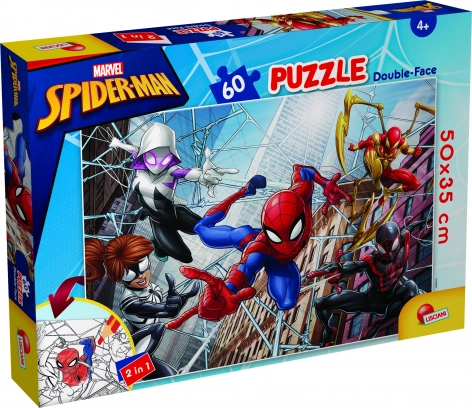 Uživajte v zabavi z dvostranskimi sestavljankami SPIDER-MAN s 60 koščki in dimenzijo 50 × 35 cm. Na eni strani sestavite barvno sliko, na drugi pa pobarvajte motiv – idealno za razvoj ustvarjalnosti in potrpežljivosti otrok.