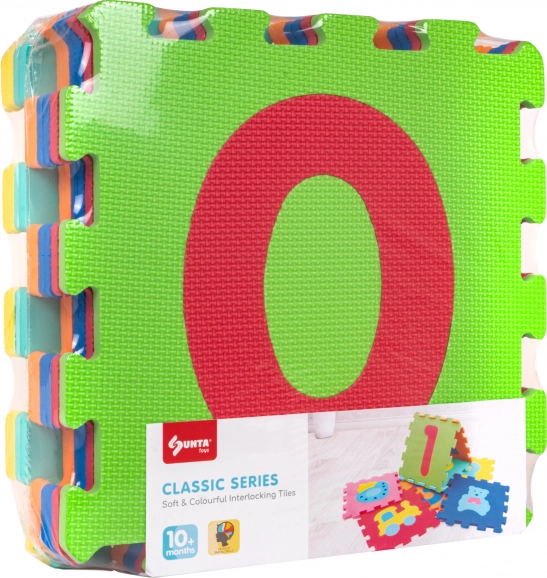 Izobraževalna penasta podloga s številkami združuje varno igro in učenje. Vsak del velikosti približno 32 × 32 × 1 cm ima izrezljive številke, s katerimi si otroci urijo fino motoriko, prepoznavanje oblik in barv ter prvo štetje. Iz 10 delov enostavno ustvarite igralno površino ali jih povežete v prostorske oblike (npr. kocke).