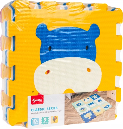 Deli iz kakovostne EVA pene so lahki, odporni in enostavni za čiščenje – dovolj je obrisati z vlažno krpo. Povezani puzzle trdno držijo zahvaljujoč sistemu utorov, površina s protizdrsno strukturo pa povečuje varnost pri igri. Odstranljive osrednje dele v obliki živali je mogoče sestavljati in iz njih ustvarjati tudi prostorske (3D) oblike, ki spodbujajo domišljijo.