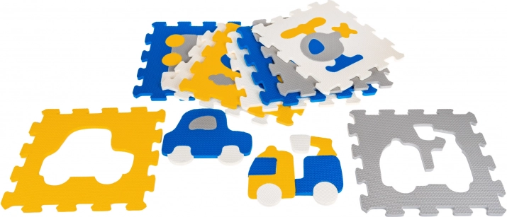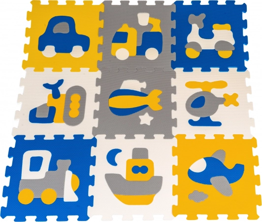 Ta penasta sestavljanka podloga z motivi avtomobilov, letal in drugih vozil je idealna za otroško sobo ali igralni kotiček. Iz 9 velikih kosov hitro sestavite mehko igralno površino, ki ščiti pred mrazom od tal in blaži padce. Izjemljivi liki iz vsakega kosa delujejo kot samostojna sestavljanka in podpirajo učenje skozi igro – prepoznavanje oblik in barv, koordinacijo oko–roka ter logično mišljenje.