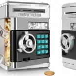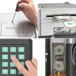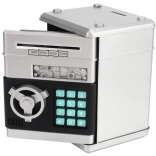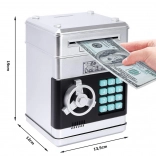 Ta elektronski trezor izgleda kot pravi trezor in je idealen za shranjevanje kovancev in bankovcev. S kodnim zaklepanjem in svetlobnimi kontrolami je ne le uporaben pomočnik, ampak tudi odlična zabava za otroke. Trezor ima prostor za vstavljanje tako kovancev kot bankovcev in je opremljen z osvetljenimi gumbi.