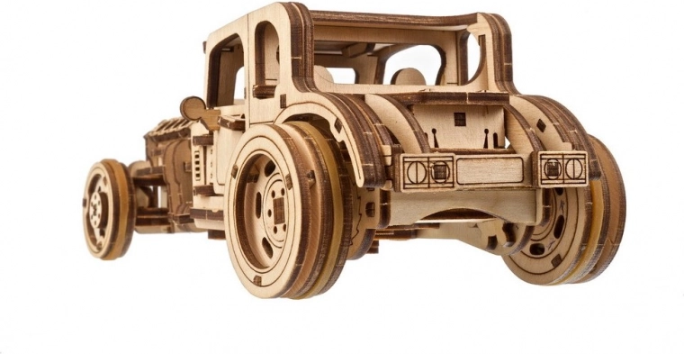 Model je zasnovan tako, da zabava pri gradnji in vožnji. Po skrbnem “razdelanem” podvozju boste uživali v gladkem teku zobnikov in dinamičnem pospešku. V naravnem lesu izgleda šik, lahko pa ga tudi pobarvate po svojem slogu. Odlično darilo za oboževalce hot rodov, mehanike in dizajna.