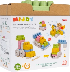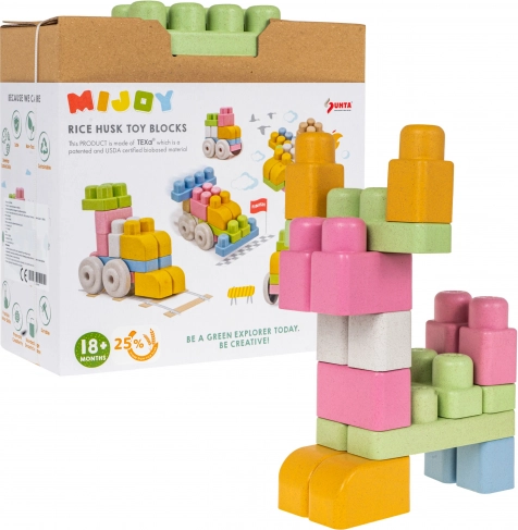 Set konstrukcijskih kock za najmlajše iz okolju prijazne serije je zasnovan tako, da spodbuja uporabo manjše količine plastike. Kocke so izdelane iz 25% biomateriala iz odpadnih riževih luščin. Imajo zaobljene robove, različne oblike in pastelne barve. Set, sestavljen iz 30 delov, omogoča sestavljanje različnih konstrukcij, kar pozitivno vpliva na otrokov razvoj, razvija prostorske in motorične veščine ter spodbuja ustvarjalnost.