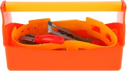 Praktičen otroški komplet orodja v oranžnem zaboju z ročajem in pasom za orodje bo razveselil vse male mojstre. Vsebuje 9 lahkih plastičnih delov, ki razvijajo fino motoriko, domišljijo in tehnično razmišljanje. Zaboj zagotavlja enostavno prenašanje in pregledno shranjevanje vseh orodij. Primerno za otroke od 3 let.