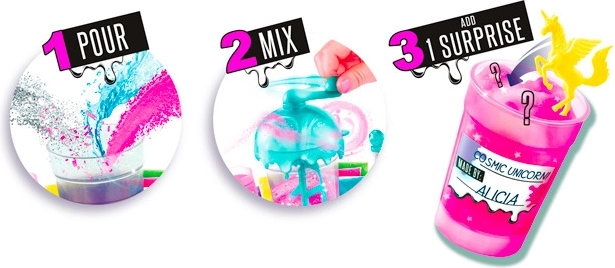 Postopek je preprost in varen: stresite mešanico v lonček, dolijte vodo do oznake, zaprite, dobro pretresejte in po 5 minutah lahko sluz raztezate, gnetete in okrasite. Komplet je odličen za zabavo doma, na praznovanjih in kot kreativno darilo.