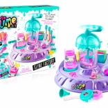 Centralna mešalna postaja, lončki, praški, bleščice in orodja – vse, kar otroci potrebujejo za izdelavo svoje sluzi brez nepotrebnega nereda.