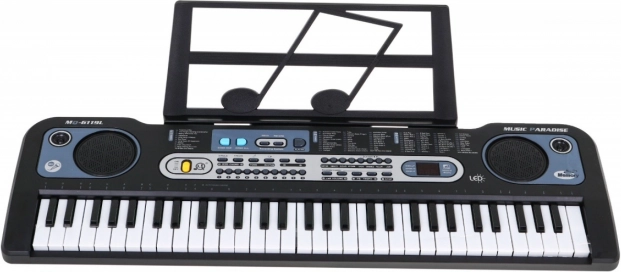 Ta otroški klaviaturni instrument je idealna izbira za prve glasbene korake. Osvetljene tipke pomagajo otrokom pri orientaciji in podpirajo učenje igranja. Pregleden digitalni zaslon, gumb ON/OFF, nastavitev glasnosti in tempa omogočajo udobno upravljanje tudi najmlajšim glasbenikom.
