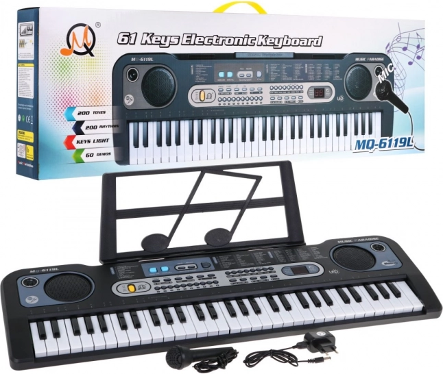 Otroški klaviaturni instrument s svetlečimi tipkami, 61 tipk, mikrofon in stojalo za note