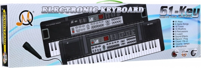 Klaviatura ponuja široko paleto zvokov, ritmov in spremljav, vključno s 16 toni (klavir, harfa, jazz kitara, violončelo, trobenta, saksofon itd.), 10 ritmi (disco, funk, balada, cha-cha, polka …), 8 kombinacijami tolkal in 6 demo melodijami. Ne manjka funkcija snemanja, start/stop, akordi in S.E/PLAY za efekte. Praktičen je tudi USB vhod za predvajanje in spremljavo, vhod za mikrofon ter možnost napajanja iz omrežja ali z baterijami.