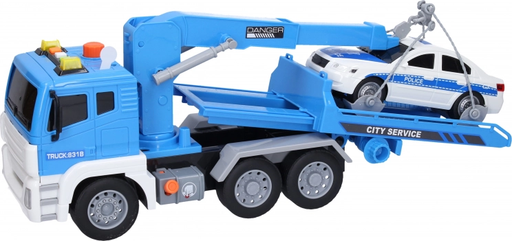 Dajte otrokom zabavno vožnjo s tem vlekačem z avtom, ki je opremljen s svetlobnimi in zvočnimi učinki, ki se upravljajo s tipkami na kabini vlekača. Vključena je tudi funkcija z vztrajnikom, ki omogoča otrokom doseči realističen doživetje pri igranju.