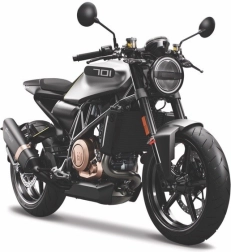 Podrobno izdelan kovinski model motocikla HUSQVARNA Vitpilen 701 (2018) v merilu 1:18 bo razveselil zbiratelje in ljubitelje enoslednih vozil. Ponuja verne proporce, premično vzmetenje in je dobavljen s prezentacijskim podstavkom z imenom modela. Zahvaljujoč izvlečnemu stojalu lahko stoji tudi brez podstavka.