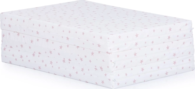 Zložljiva vzmetnica Chipolino dimenzij 120x60 cm je zasnovana tako, da ustreza standardnim otroškim posteljicam. Zahvaljujoč kompaktni zasnovi je enostavna za uporabo in vzdrževanje. Prevleka vzmetnice je okrašena z rožnatimi zvezdami, kar prinaša nežen in prijeten videz otroški sobi.