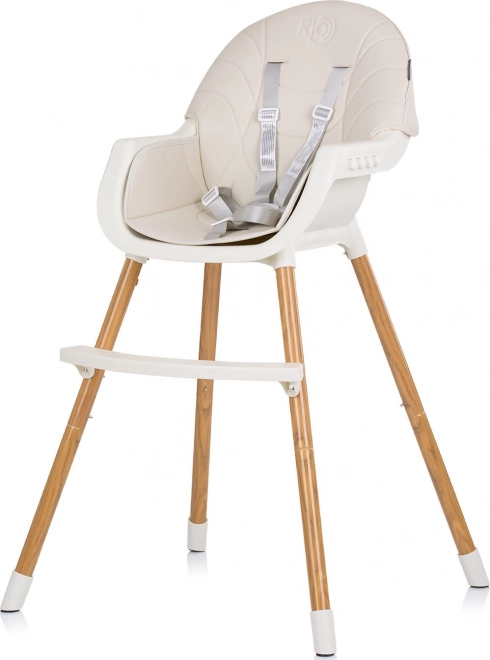 Jedilni stol7ek Rio 2v1 ponuja prilagodljive mo7enosti nastavitve, saj lahko slu7ei kot visoki ali nizki stol in je namenjen samostojno sede0dim otrokom. Zahvaljujo0d udobnemu sede7eu z usnjenim prevlekam je stol7ek enostaven za 0di610denje in daje notranjosti sodoben videz. 5-to0dkovni varnostni pasovi zagotavljajo najve0djo varnost va61ega otroka med obroki.