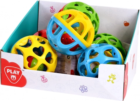 Ta žoga z ropotuljico je idealna igrača za najmlajše otroke. Otroci so navdušeni nad njeno živo barvitostjo in zvokom ropotuljice. Velikost žoge je 9 cm, kar je idealno za male roke. Pakiranje vsebuje 8 kosov, ki jih lahko razstavite na prodajnem stojalu.