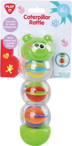 Ropotuljica gosenica 22 cm, idealna za otroke od 6 mesecev, podpira otipno zaznavanje. Enostavno držanje, zabavno ropotanje.