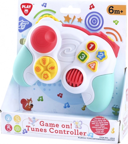 Ta prikupen gamepad PlayGo otrokom prinaša svet svetlobe in zvokov v varni in zabavni obliki. Ergonomična oblika za majhne ročice in pregledni kontrolniki spodbujajo radovednost, razvijajo fino motoriko in koordinacijo oko–roka. Zaradi kompaktnih mer 14,5 × 5,5 × 10,5 cm ga zlahka držijo tudi najmlajši.