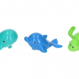 Te plavajoče živalice prinašajo otrokom veselje do vode – dovolj je, da zavrtite navijalni kolešček na spodnji strani in opazujete, kako se račka, želvica ali delfinček premikajo po gladini. Zaradi kompaktne velikosti 10 cm jih zlahka primejo tudi manjše otroške roke.