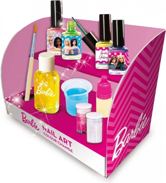 Odkrij svojo ustvarjalnost z modnim kompletom BARBIE Nail Art, s katerim si lahko izdelaš lasten lak za nohte, ki menja barvo. Eksperimentiraj z menjavo odtenkov na svetlobi in ob stiku s hladno vodo ter uživaj v množici trendovskih barv in izvirnem manikirnem učinku.