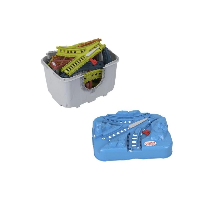 Predšolski otroci lahko razširijo svoje priljubljene komplete Tom in prijatelji ter ustvarjajo povsem nove postavitve s kompletom Connect and Build Box Track podjetja Fisher-Price. Ta dodatni komplet vsebuje različne kose tirov, vključno z ravnimi in vzpenjajočimi se tiri ter zavoji. Vključeni so tudi drugi elementi, ki obogatijo igralni svet. Vsi deli se prilegajo v škatlo, ki jo je mogoče skupaj s pokrovom uporabiti kot gradbeni element. (Lokomotive so naprodaj ločeno, glede na razpoložljivost).