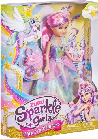 Punčka SPARKLE GIRLZ Samorogova princesa prinaša pravljico v otrokove roke. Zaradi bleščeče obleke z motivi samorogov, izrazitih barv in dolgih las je kot ustvarjena za pripovedovanje zgodb, igro princes in magične dogodivščine. Idealna za male ljubitelje domišljije in modnih dodatkov.