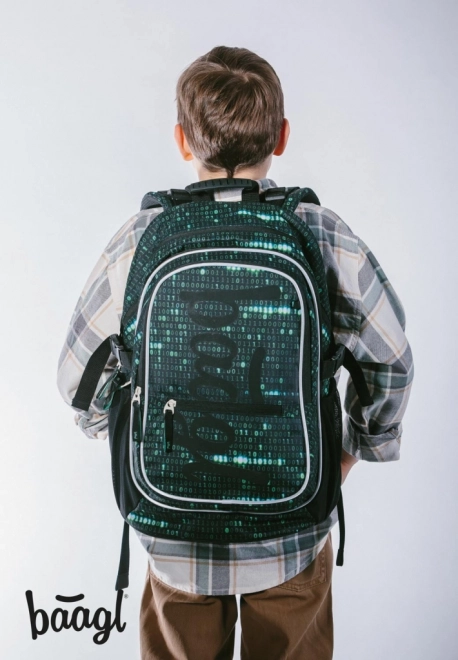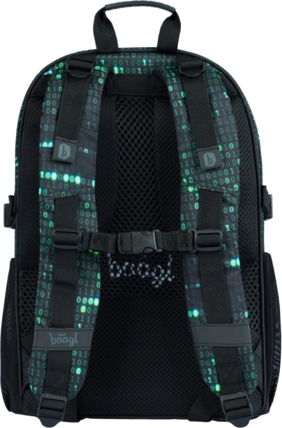 Komplet Baagl Core Numbers zagotavlja vse, kar šolar potrebuje za udobno in organizirano učenje. Ergonomski nahrbtnik s tremi ločenimi zapiralnimi predelki in notranjim žepom za 15-palčni prenosnik ponuja velik volumen 25 litrov in je izdelan iz vodoodpornega materiala. Nahrbtnik ima zelo nizko težo le 900 g in nosilnost 7 kg. Udobje omogočajo nastavljivi ramenski, prsni in bočni kompresijski pasovi, ter za večjo varnost ne manjka odsevnih elementih. Del nahrbtnika je trendovski obesek in bil je testiran v akreditiranem laboratoriju.